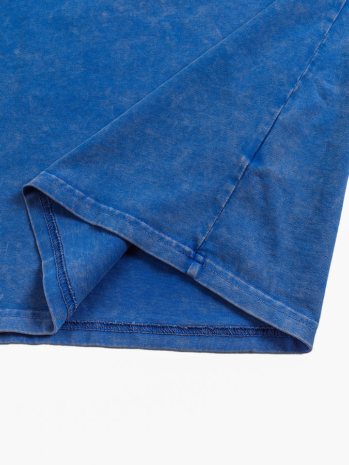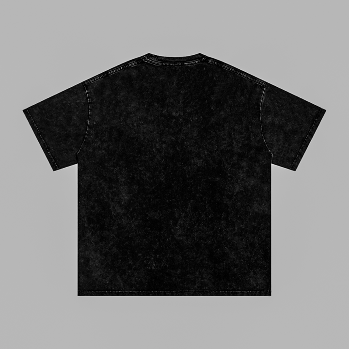 Mineral Erosion Finish: Each garment undergoes a heavy mineral "snow" wash process. This creates a unique, uneven patina and a soft, suede-like hand feel. Note: Due to this treatment, no two tees are identical.
