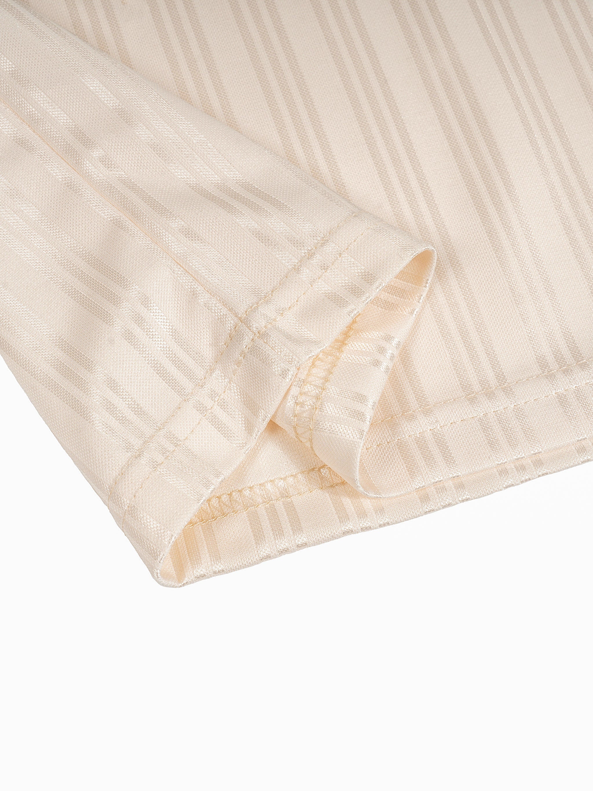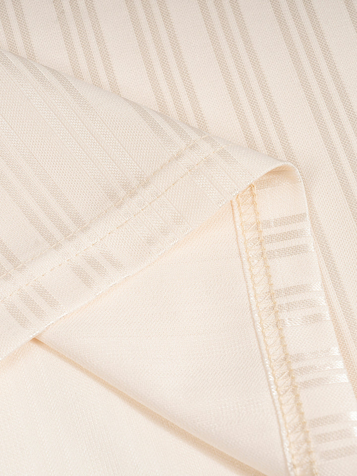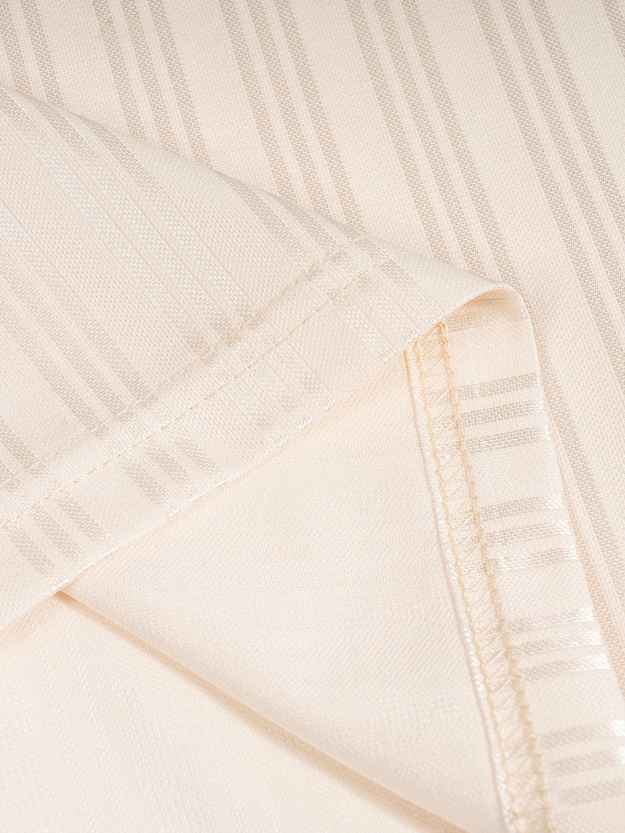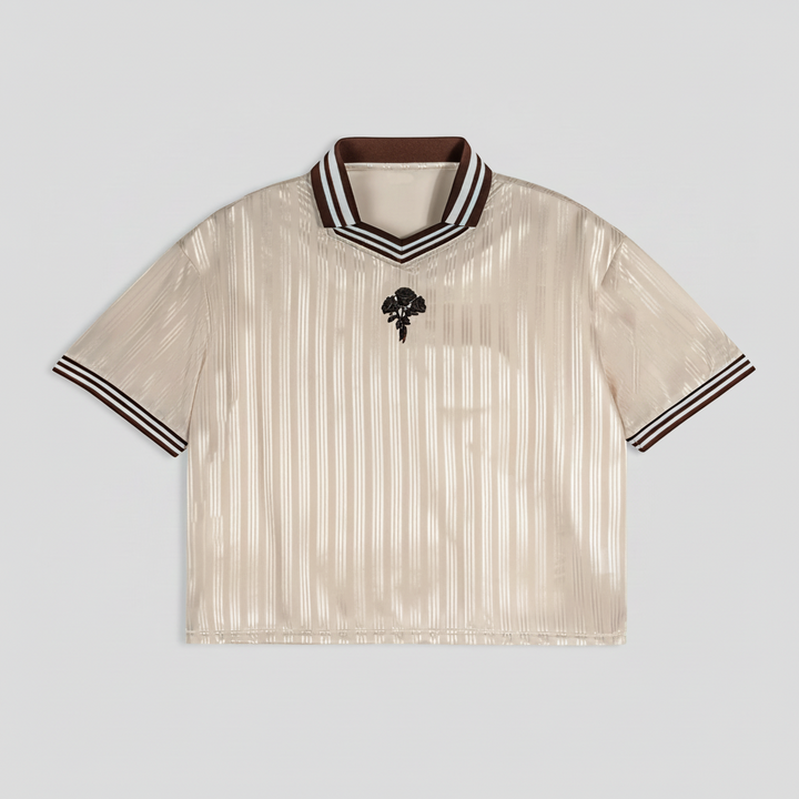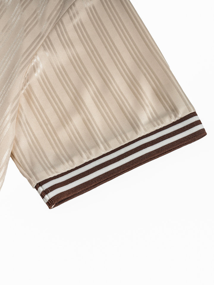 Atelier Detail: Finished with a crisp, ribbed lapel collar and high-contrast brown/cream trim.